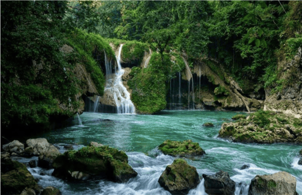 Waterfall Of Cham Pey is the natural resort locating at 35-kilometer distance from the provincial town along the road No 68. The resort consists of waterfall at the mountain valley, big rock having 500-square meter size, mountain full of trees and a lot of orchids and other colorfull varied flowers. At 500-meter distance from the waterfall, there is another natural and cultural resort, which has been arranged and organized by monks who make their meditation there. This resort named Rut Cham Pey having many varied statues depicting the process of human life-born and died and other religion and animal figures.